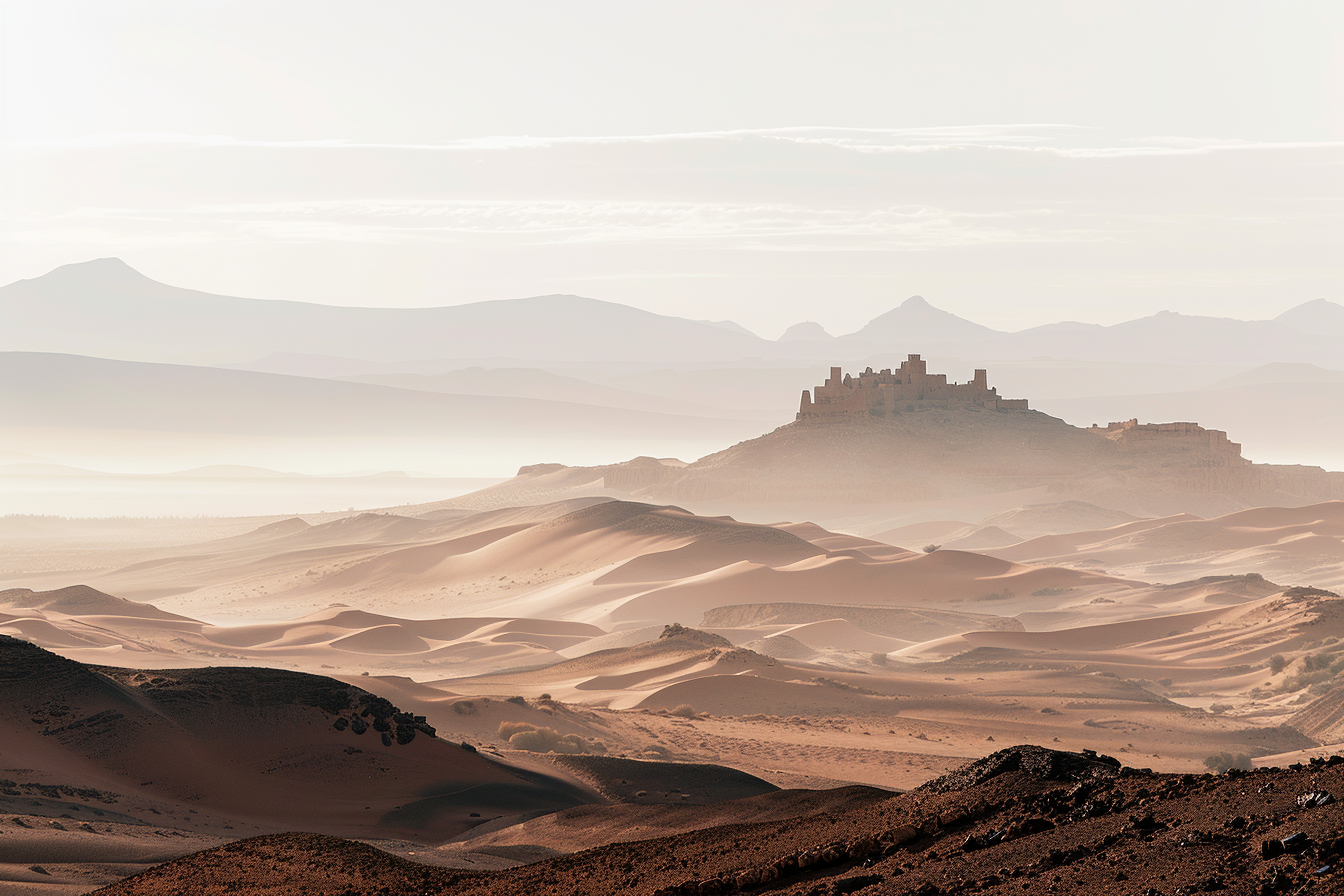 Continue south through the Valley of Ouarzazate to the palm groves of Agdz. Here begins the Drâa Valley, a green corridor of date palms and ancient forts. Arrive at Tamnougalt by afternoon and settle inside the Kasbah des Caïds, a living museum of earth and memory. Explore its labyrinth of rooms and terraces overlooking the oasis. Evening by candlelight, the desert wind whispering through thick walls.