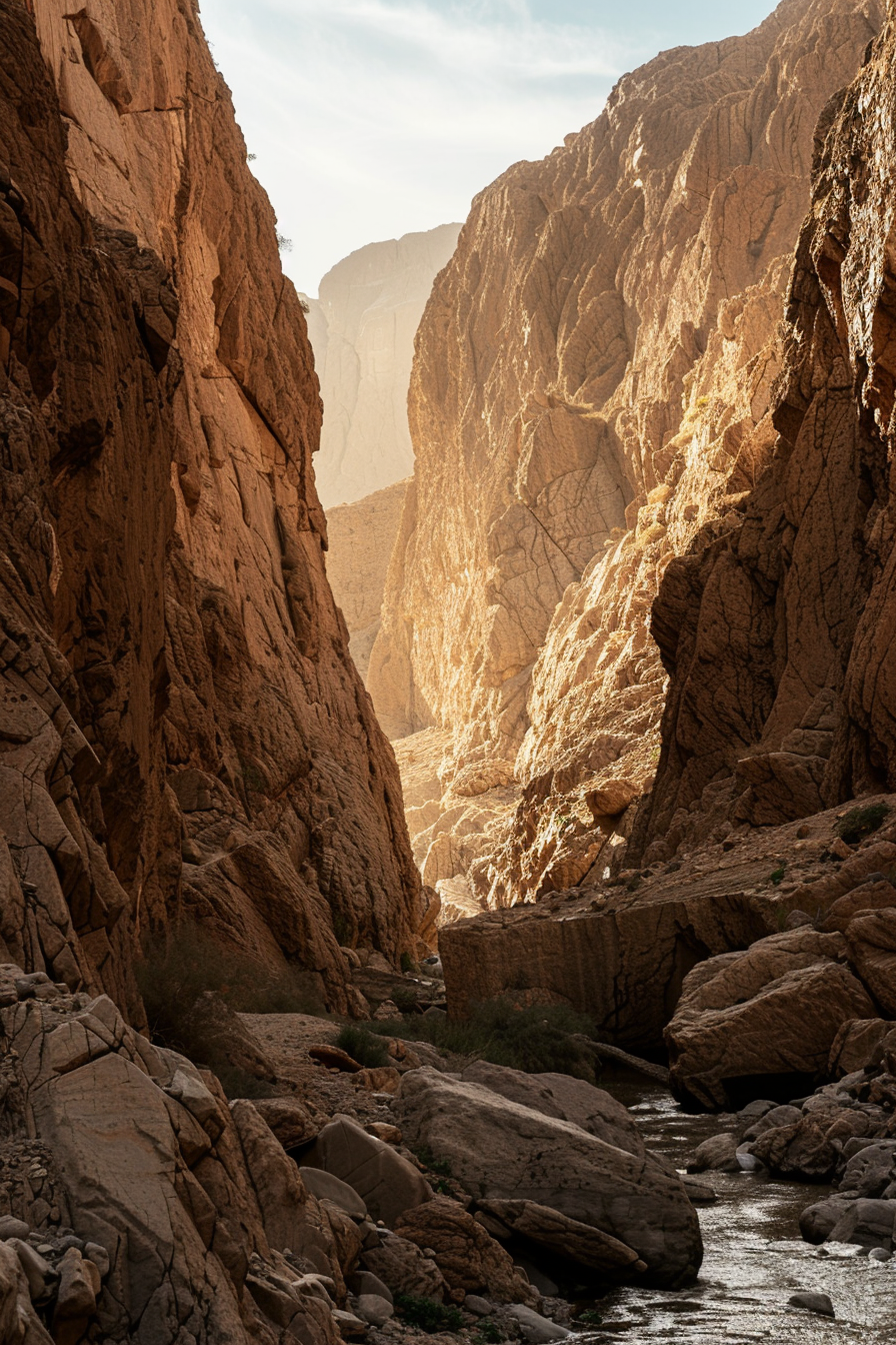 Descend from the high plains into Todra, where rock narrows to river and stillness becomes strategy. Here, families farm wheat and figs. They do not move with the seasons—they anchor them. You visit small plots irrigated by hand, the static counterpart to the moving life above. Two ways of surviving the same mountain. Neither is easier.
