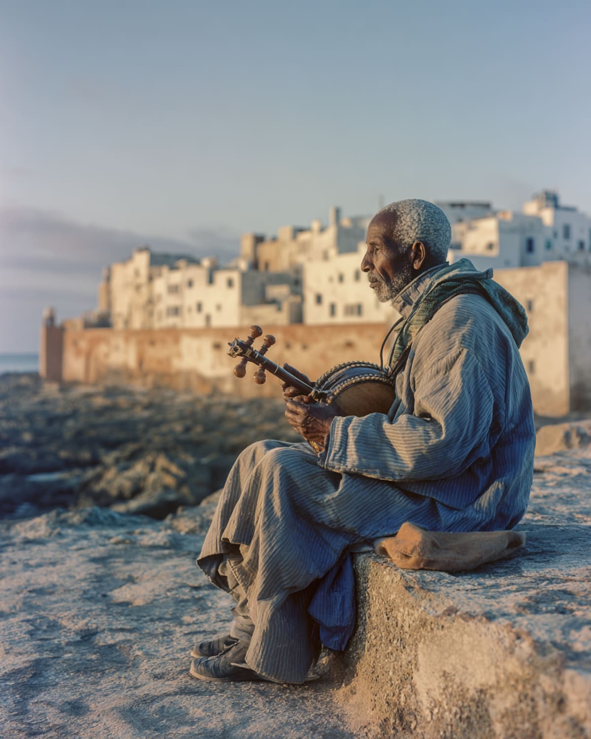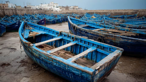 South along the Atlantic. The coast road unspools through farmland and fishing villages, Oualidia's lagoon glinting inland where flamingos wade in the salt pans. The landscape dries as you go south — argan trees replacing green fields, goats balancing in branches. The wind picks up an hour before Essaouira. You feel the town before you see it — the temperature drops, the air sharpens with salt and cedar. Then the white walls appear against blue sea and bluer sky. The port smells of fresh catch and rope. Seagulls wheel. The shutters rattle in the alizé.