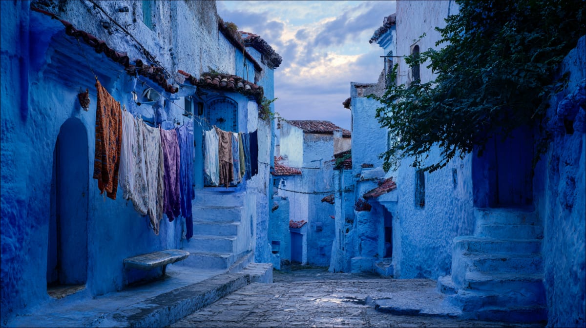 Blue on blue on blue. Every surface painted—walls, steps, doorways, pots. The tradition started with Jewish refugees in the 1930s. No one remembers exactly why. The color just is now. You climb to the Spanish Mosque at sunset. The blue rooftops spread below. The Rif peaks watch. The town doesn't explain itself. Neither should you.