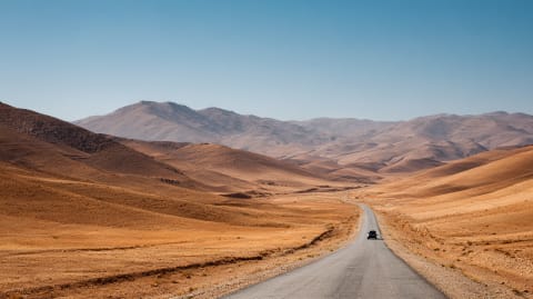 The long road home. Taznakht passes where the women weave — geometric rugs in natural dyes, each one a map of something the weaver won't explain. Ouarzazate marks the turn north. Then the climb — Tizi n'Tichka winding upward through shepherd country, the Atlas showing its spine, the air cooling degree by degree. You pass through the altitude where the landscape changes from desert amber to mountain green. Marrakech appears below as the pass releases you, red and sprawling under the haze. The desert stays in your skin. You can still feel the sand between your fingers when you close your hand.