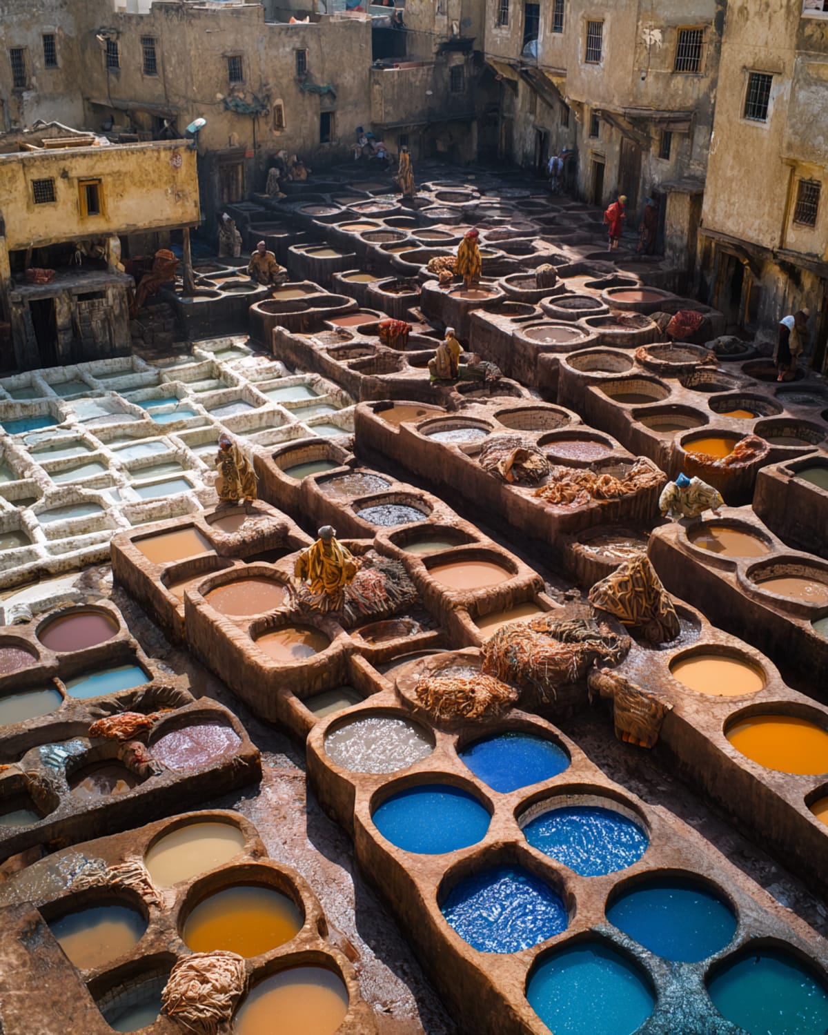 Nine thousand alleys. The medina hasn't changed in a thousand years—same crafts, same quarters, same calls echoing off the walls. The tanneries still use pigeon dung. The brass workers still hammer by hand. You get lost. Everyone does. A boy leads you out for a coin. By evening, you've stopped trying to map it. The labyrinth is the point.