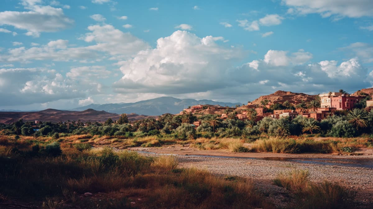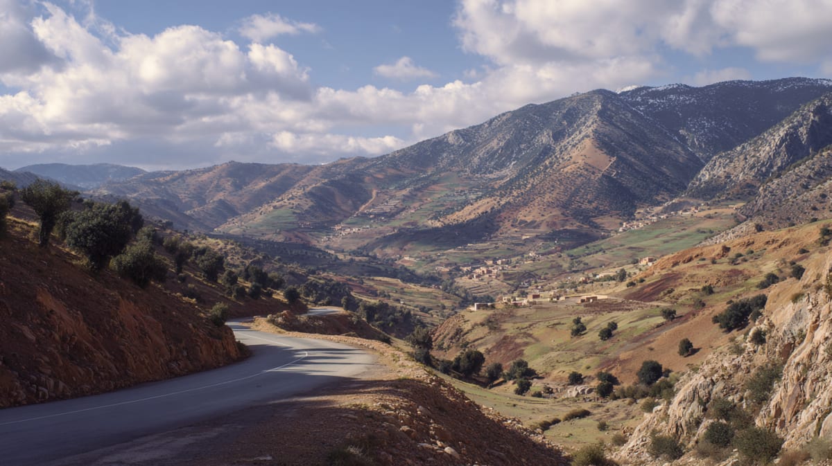 The road climbs until Marrakech disappears — first the palms, then the minarets, then the haze. Stone villages cling to slopes where the light shifts by the hour, women carrying bundles of firewood along paths that predate the tarmac by centuries. Switchbacks tighten around you like a held breath. Your ears pop at the pass — 2,260 metres, the highest paved road in Morocco. The south side is different. Drier. Warmer. The colour changes from green to ochre in the space of a single bend. By afternoon, the mountains release you into silence. Ouarzazate waits — not as a destination but as a threshold. A glass of tea arrives before you ask. The mint cuts through the dust on your tongue.