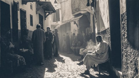 North from the waterfalls. Your boots are still damp, the mist from Akchour clinging to your clothes. The Rif descends in waves of green — cannabis terraces, cork oak, villages where the Spanish colonial architecture crumbles beautifully. Chefchaouen passes in blue glimpses through the window. Then the road opens toward the Strait, the Mediterranean appearing flat and silver. Tangier rises on her hills — threshold city, café terraces overlooking fourteen kilometres of water where Africa watches Europe and neither blinks.