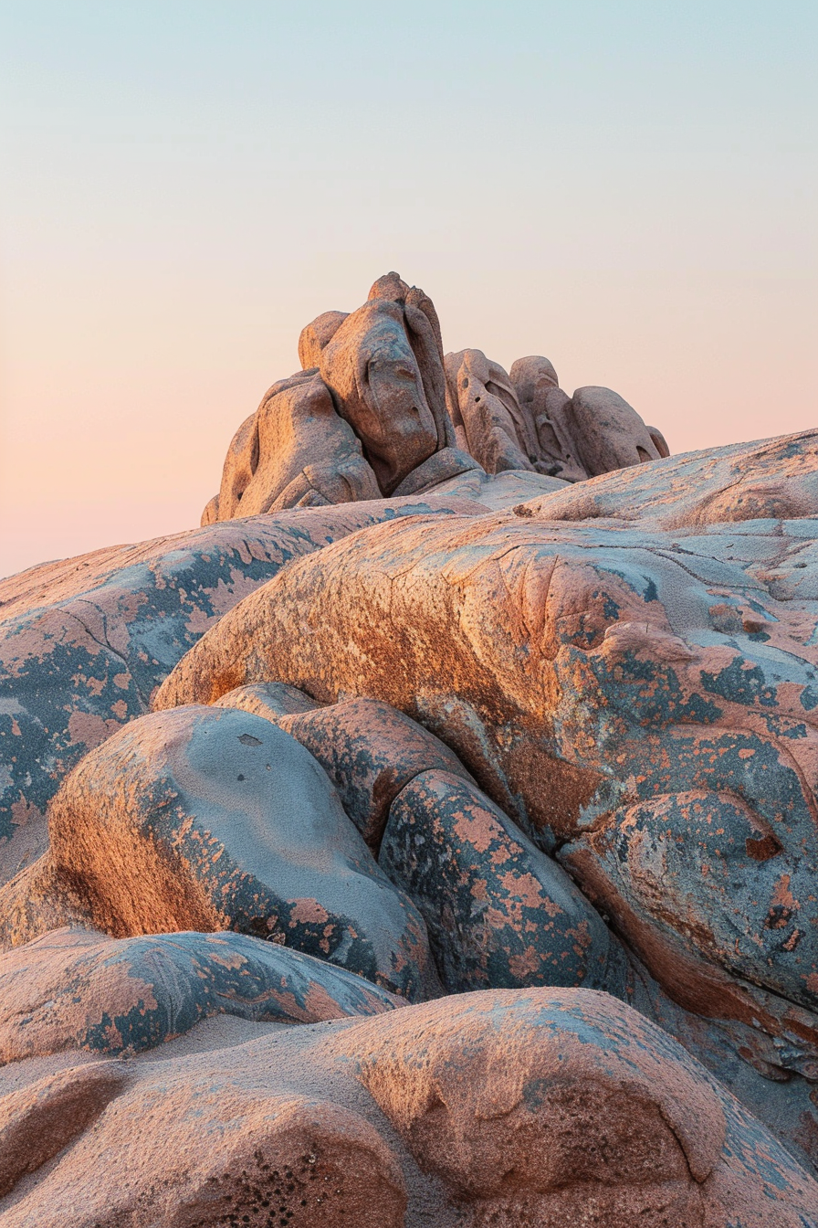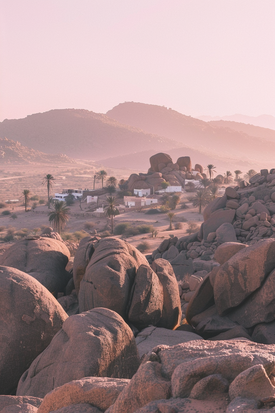 The heart of the Anti-Atlas beats softly in Tafraoute. Here the mountains trade drama for intimacy — a valley of pale granite boulders that blush at dawn and fade to violet at dusk. Villages nestle among the rocks like echoes of the landscape itself, and the silence hums with light. A few hills away, the Painted Rocks stand as quiet conversation between art and geology — colors weathered by time, blending back into the earth. It’s Morocco’s gentlest desert, carved not by sand, but by patience.